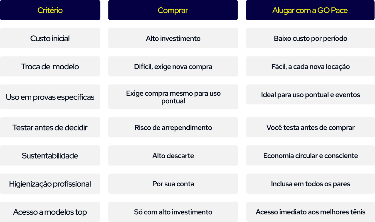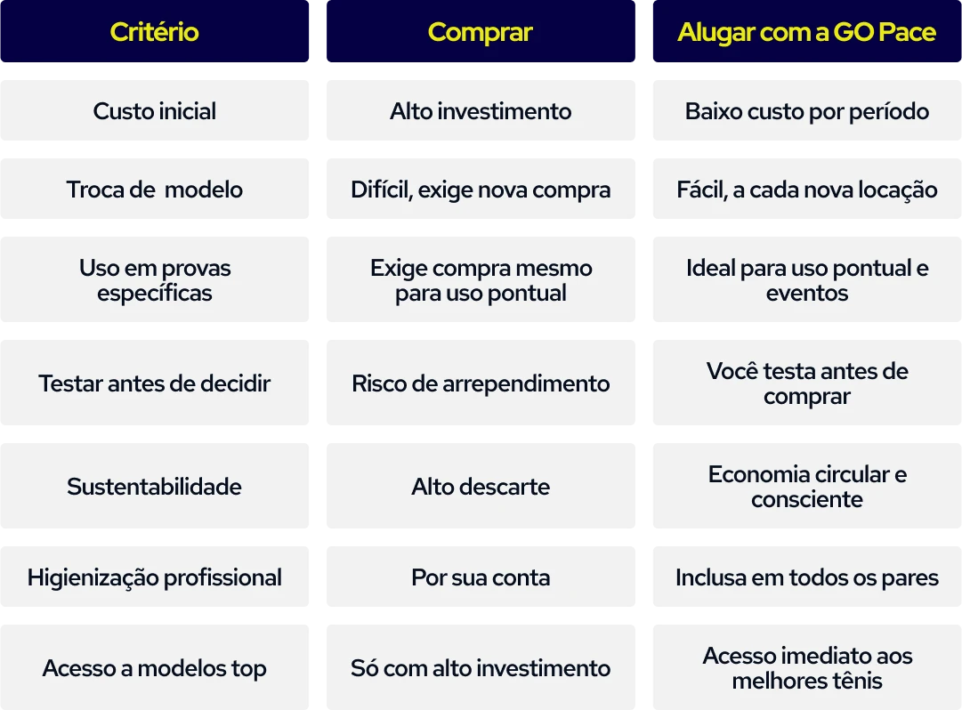Na GO Pace, você aluga tênis e equipamentos de alta performance por 3, 7, 15 ou 30 dias.